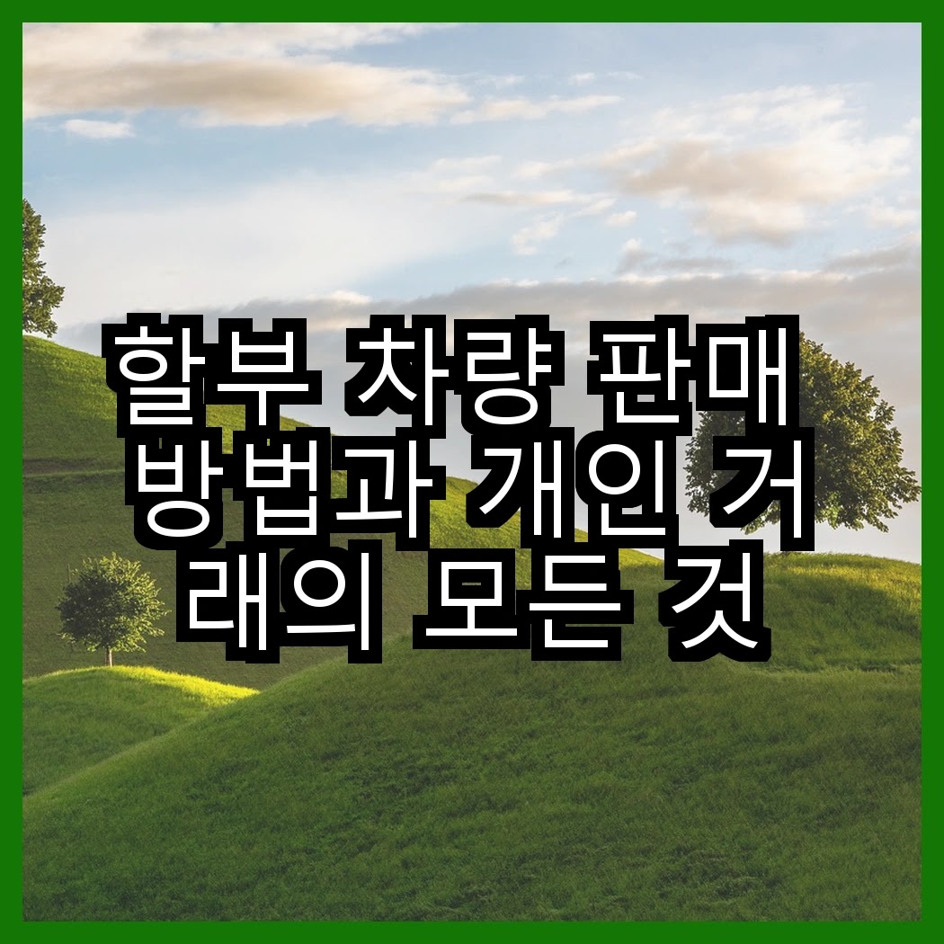 차량을 판매할 때 할부 차량 판매에 대해 고민해 본 적이 있나요? 저도 급하게 현금이 필요했던 적이 있었는데, 이때 많은 고민이 있었어요. 할부금이 남아 있을 때 거래를 어떻게 진행해야 할지, 필요한 서류는 무엇인지, 여러 가지 정보를 모아보았답니다. 이 글에서는 그런 궁금증을 해결할 수 있는 내용을 담아봤어요.